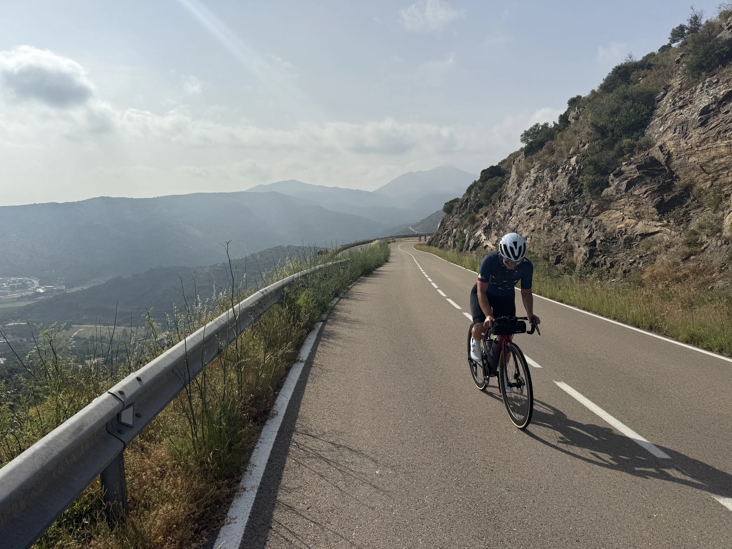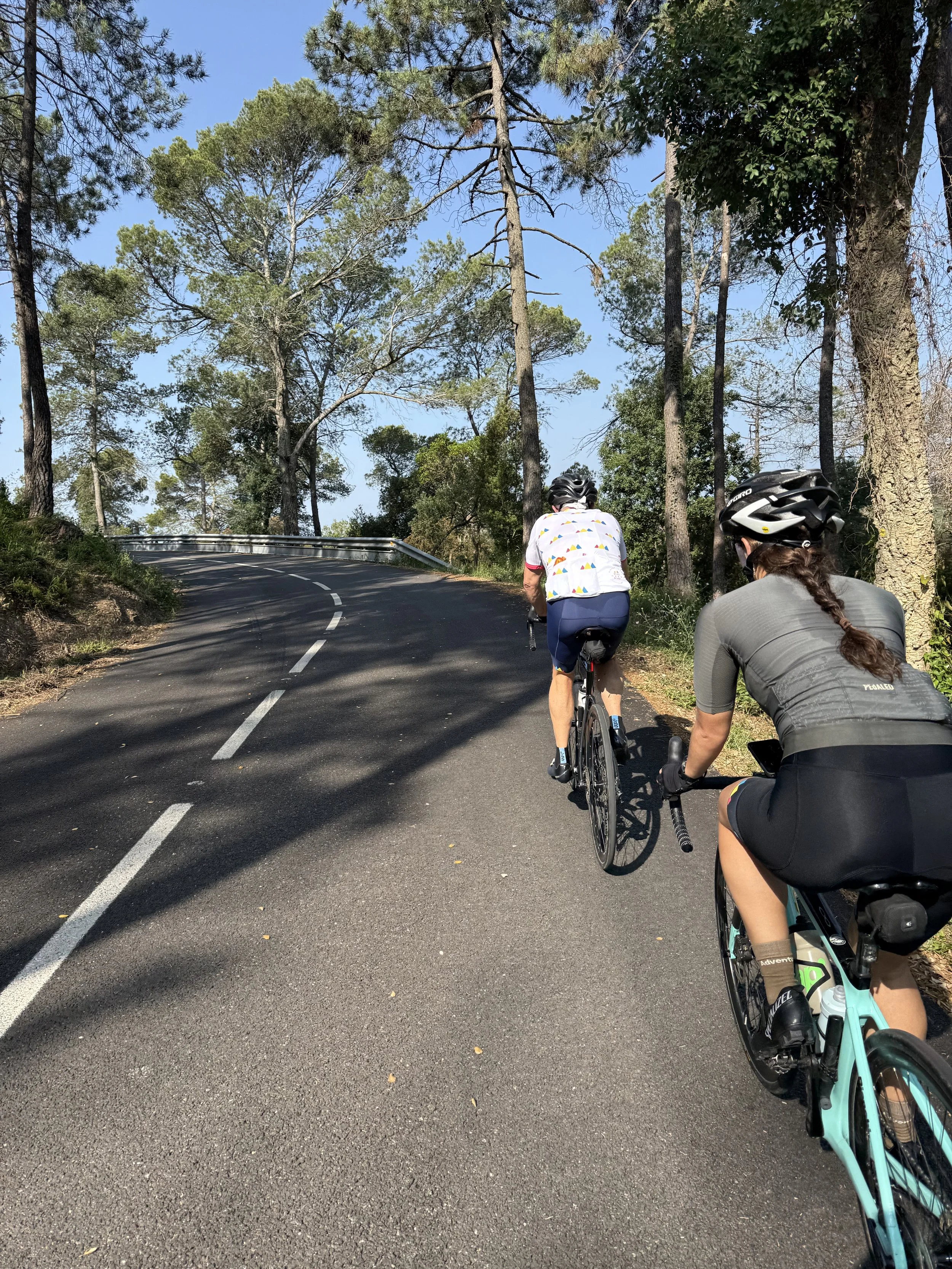 Day 1 started with the classic locals climb to Els Angels – superb conditions with views to the Med and Pyrenees. We descended to the beautiful medieval villages of the Emporda region, with arroz de Pals a fabulous first lunch – sniffed out by Tour Gourmandes David and Frank. Ian set a cracking pace on Day 1 – and surprised even his friends on his navigational skills with old-school maps and no GPS and would often be tete de la course! With rolling coastal riding along the Costa Brava superb, the first ‘steep pinch’ to Tamariu – our gorgeous hotel awaiting with afternoon tea on the terrace, a few G&Ts, Spritz and swims in the idyllic bay with seafood for dinner.