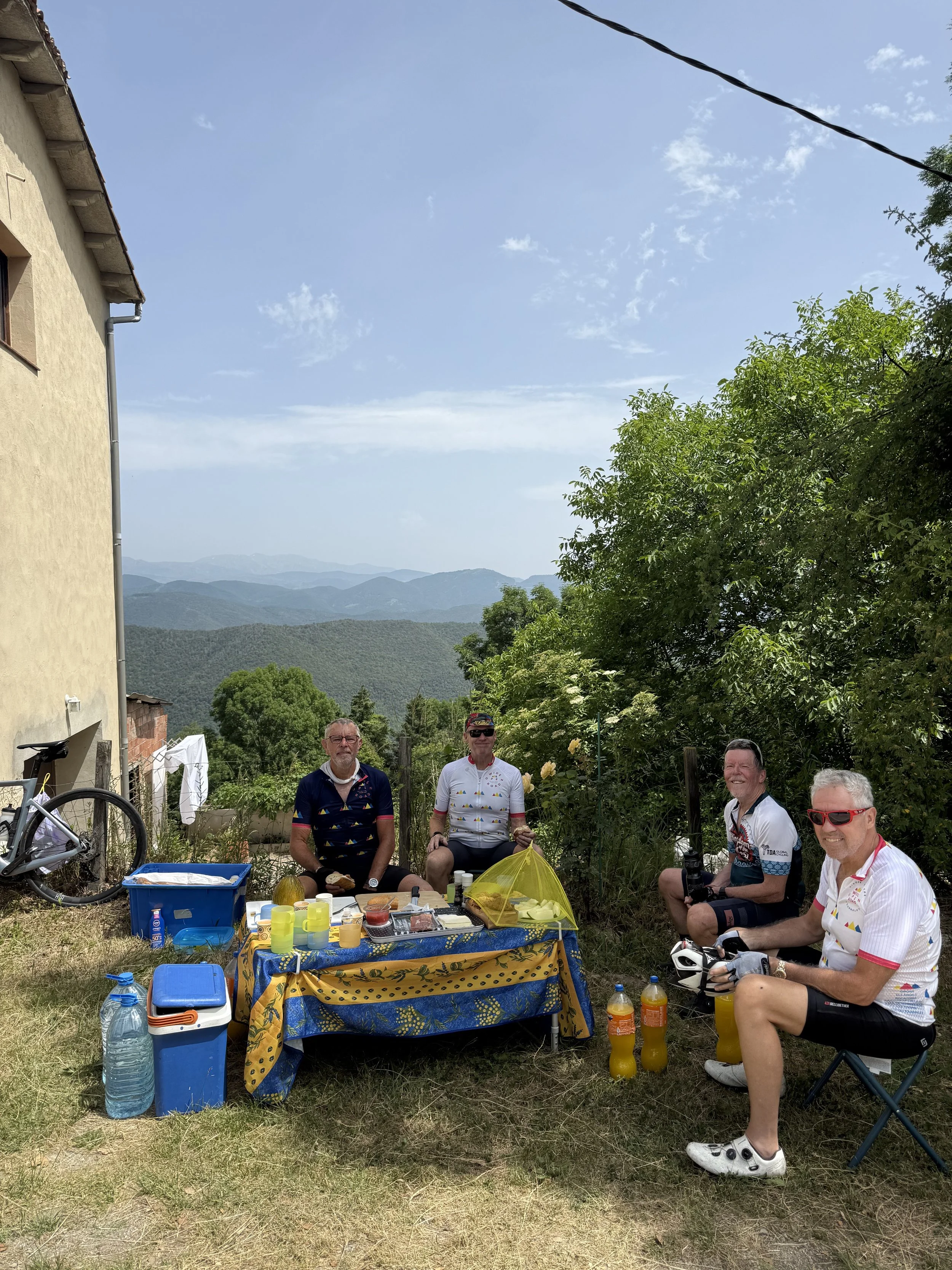 Short v Long – part of the group conquered the Rocacorba – kudos to Janice, Amy, Mal, Ian, Nick, Leanna and Matilda while the short group enjoy a picnic lunch on the Col de Santigosa with our first views of the snow capped Pyrenees. A restored farm house delightful accommodation – thanks to Cliffo for your help!
