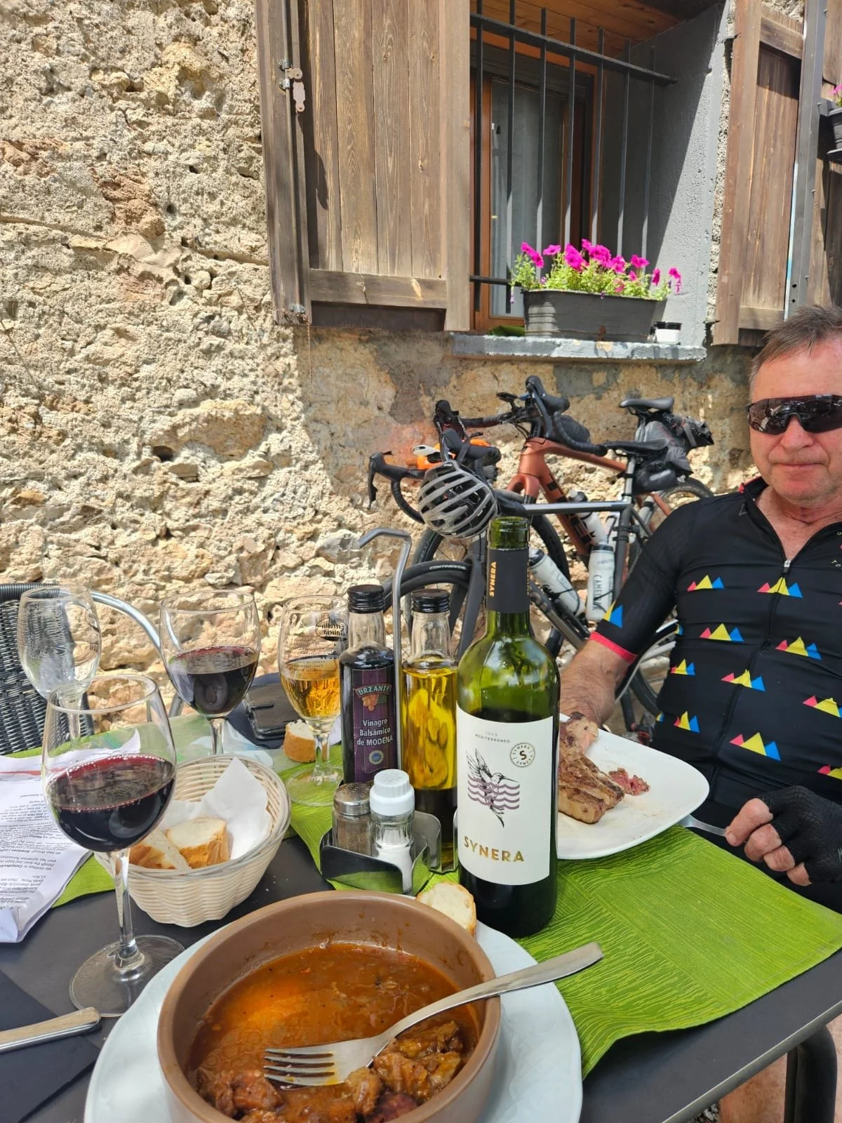 Seu d’Urgell for 2 nights enabled the group to rest, visit Andorra (by bike or bus) and indulge in a delightful group meal at a family run restaurant that closed just for our group for the night – a degustation of local wines paired to each course. Outstanding and such beautiful hospitality.