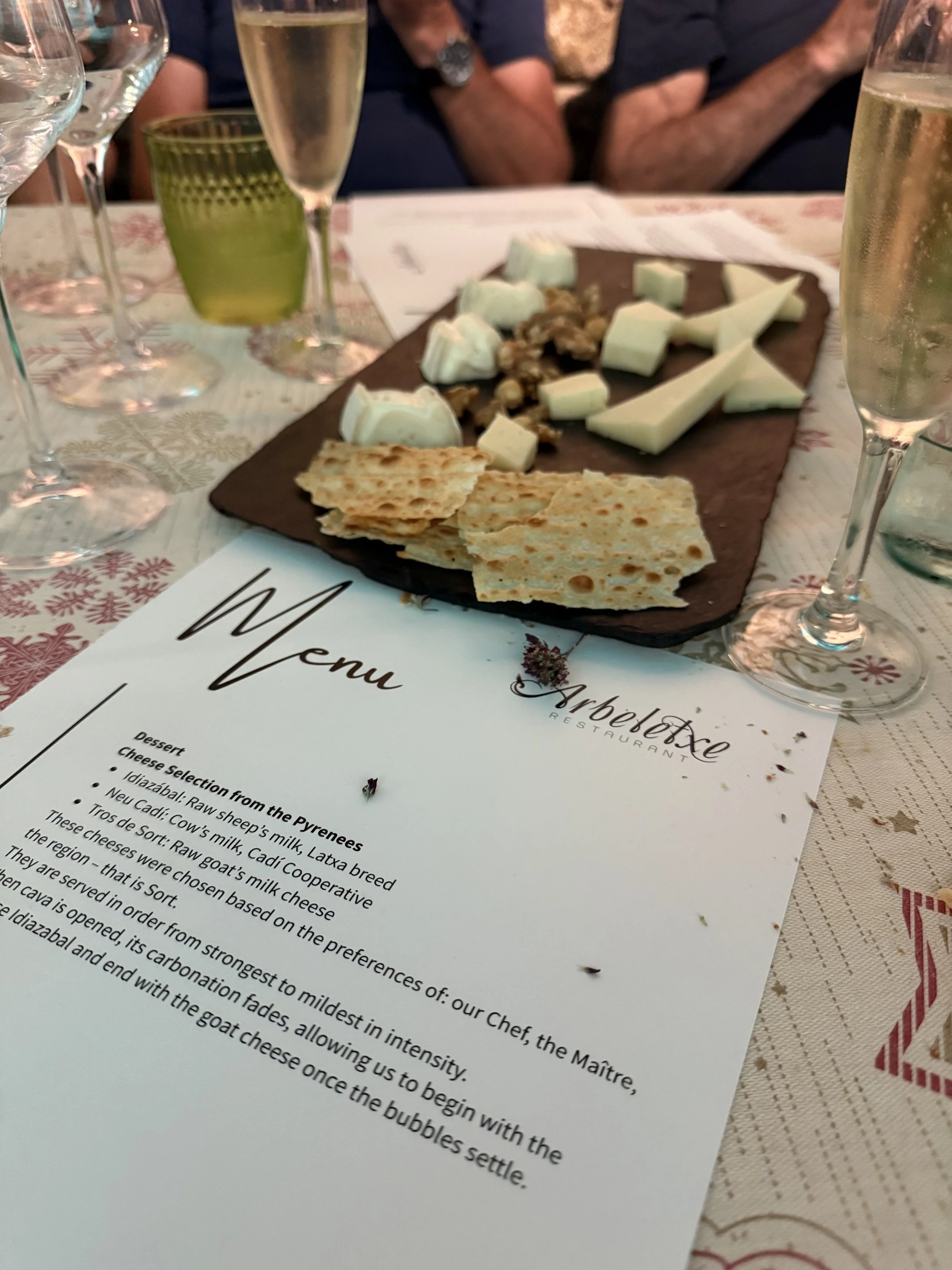 Our incredible wine degustation dinner in La Seu - the cheese selection impressive!