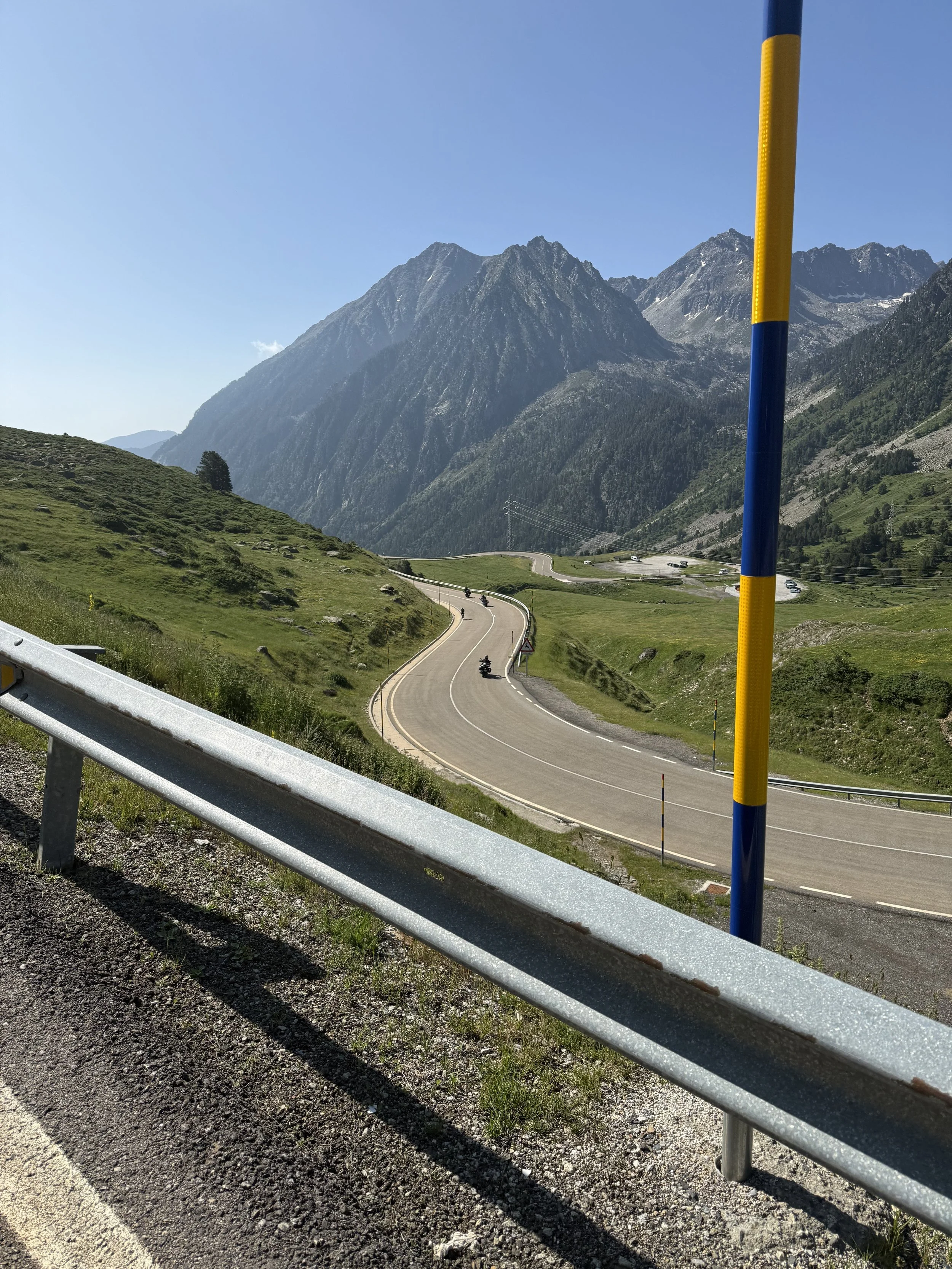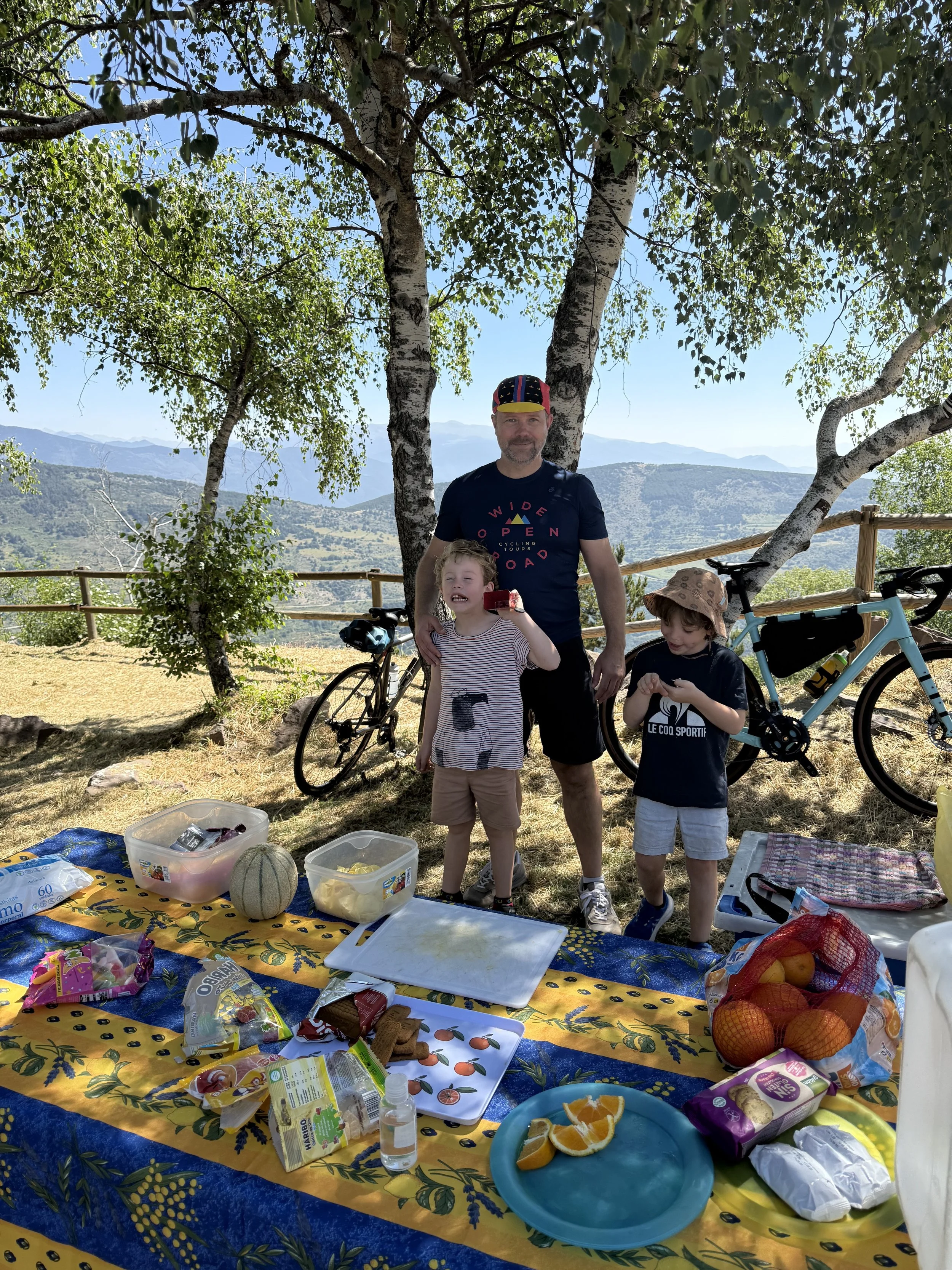Pepe and my two young boys (Max and Leo) took on support duties on the Port del Cantó (1721m), setting up 2 rest stops along the way with snacks, water and dinosaur chocolate biscuits, of course! Big thanks to Alfie for dragging me along the valley that afternoon with a hot headwind. The mountain chalet hotel and pool a welcome relief - I don’t think I was the first cyclist to jump straight in in my lycra!