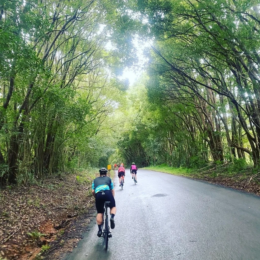 From Byron the foodie focus continued, with brunch at the iconic 3 Blue Ducks restaurant at The Farm, a working farm with a focus on sourcing local seasonal produce. We tackled “Possum Shoot Road” climb with misty views back to the ocean. The rolling riding continued through Federal for ice creams and Japanese. We descended steeply to Repentance Creek - flooding over the road meant the group certainly had time to repent as they climbed back up!