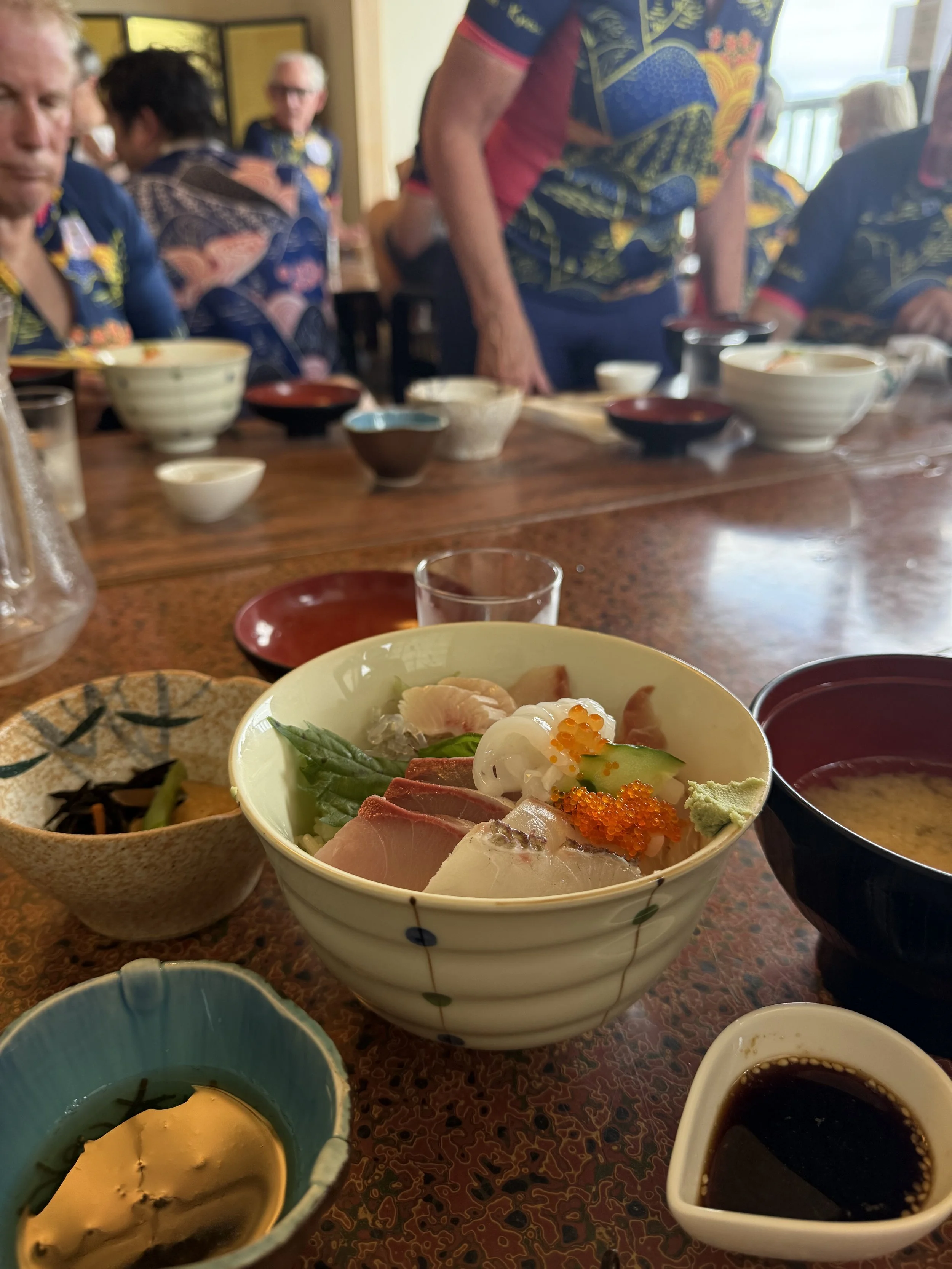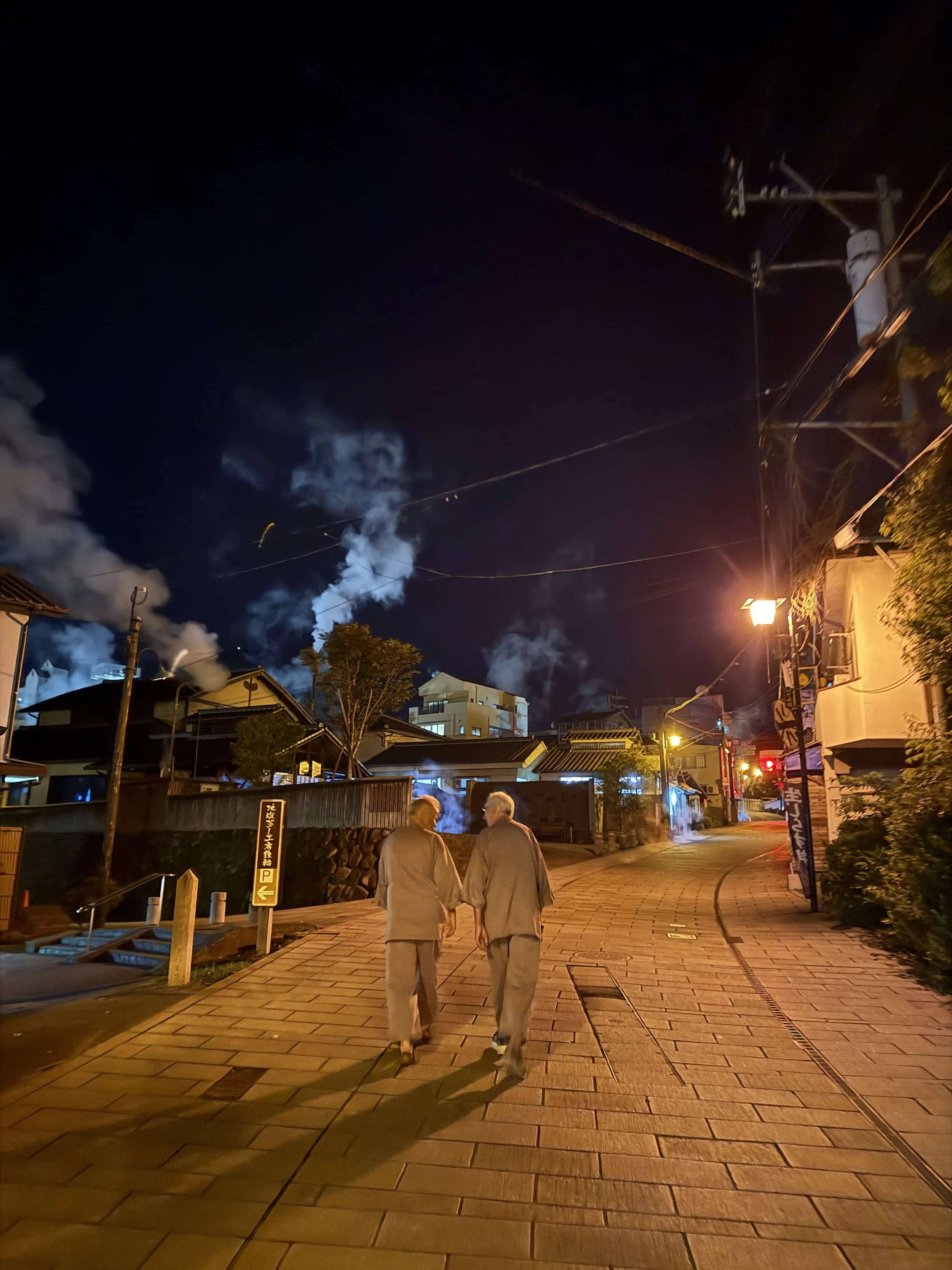 Beppu is an otherworldly town of steam - rising from the streets, used to cook “hell steamed” food and onsen dotted throughout historic Kannawa - the group set off to explore - each finding joy, relaxation and ‘healing’ in different onsen - the sand onsen by the waterfront was popular and the experience of the herb onsen - using sekisho, a Japanese herb as an aromatic bed to lie on in an almost cave like room something I will never forget. Rob and Nige managed to tick off all the “Hells” of Beppu - their favourite the Oniishibôzu Jigoku - or mud hell. Kannawa after dark must be experienced - the steam rising out of the pavement glowing in the night lights giving an eeriness and mythical atmosphere to the dark streets. The Banana Boat bar a “Lost in Translation” moment with Tim and Dave - sometimes, what happens on Tour, stays on Tour…!