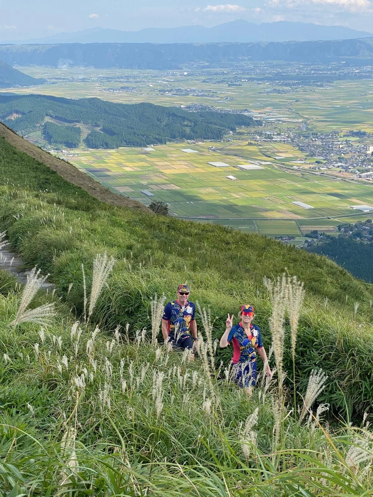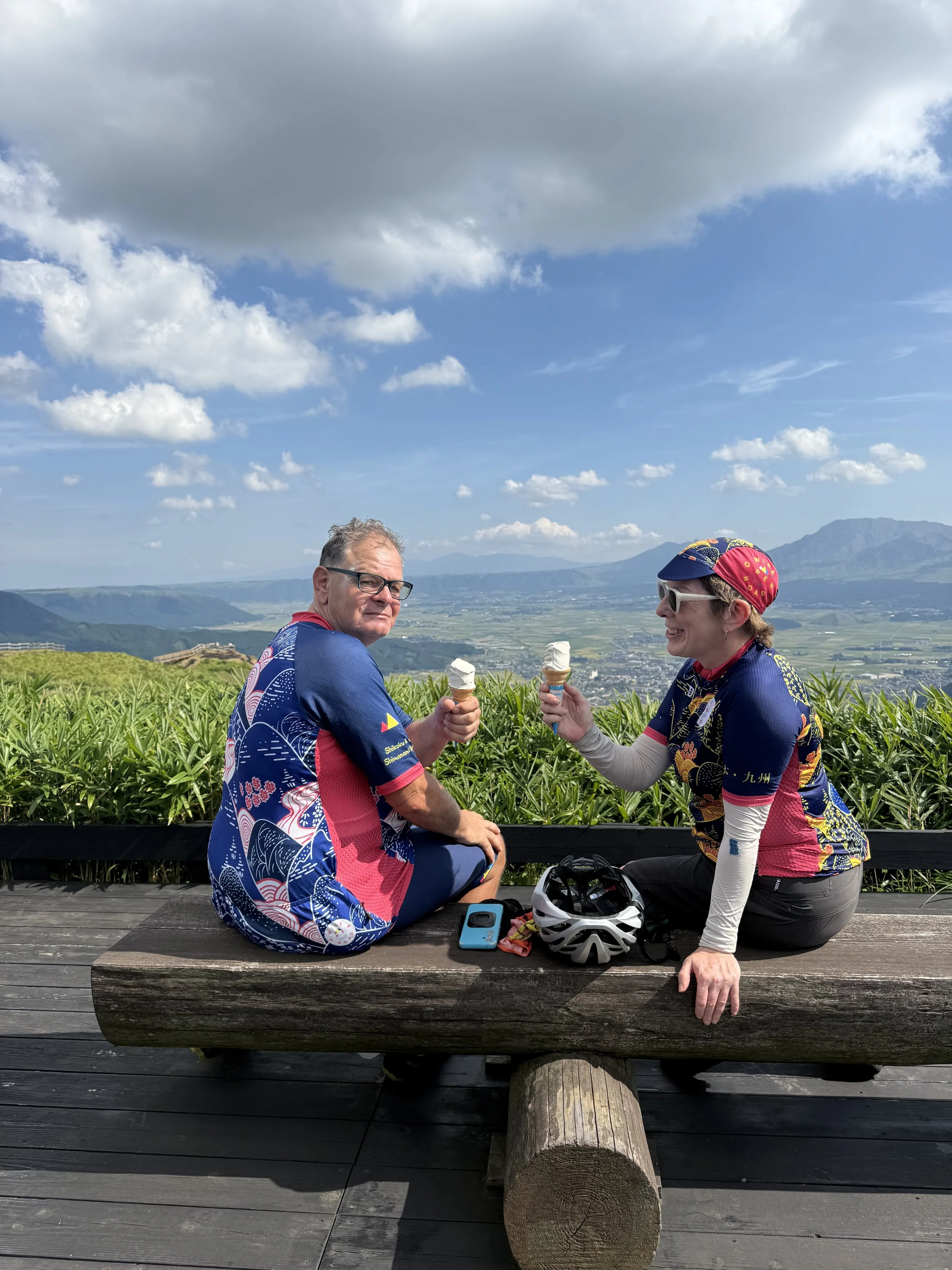 Russ and Jo enjoying icream and a view of the Aso caldera