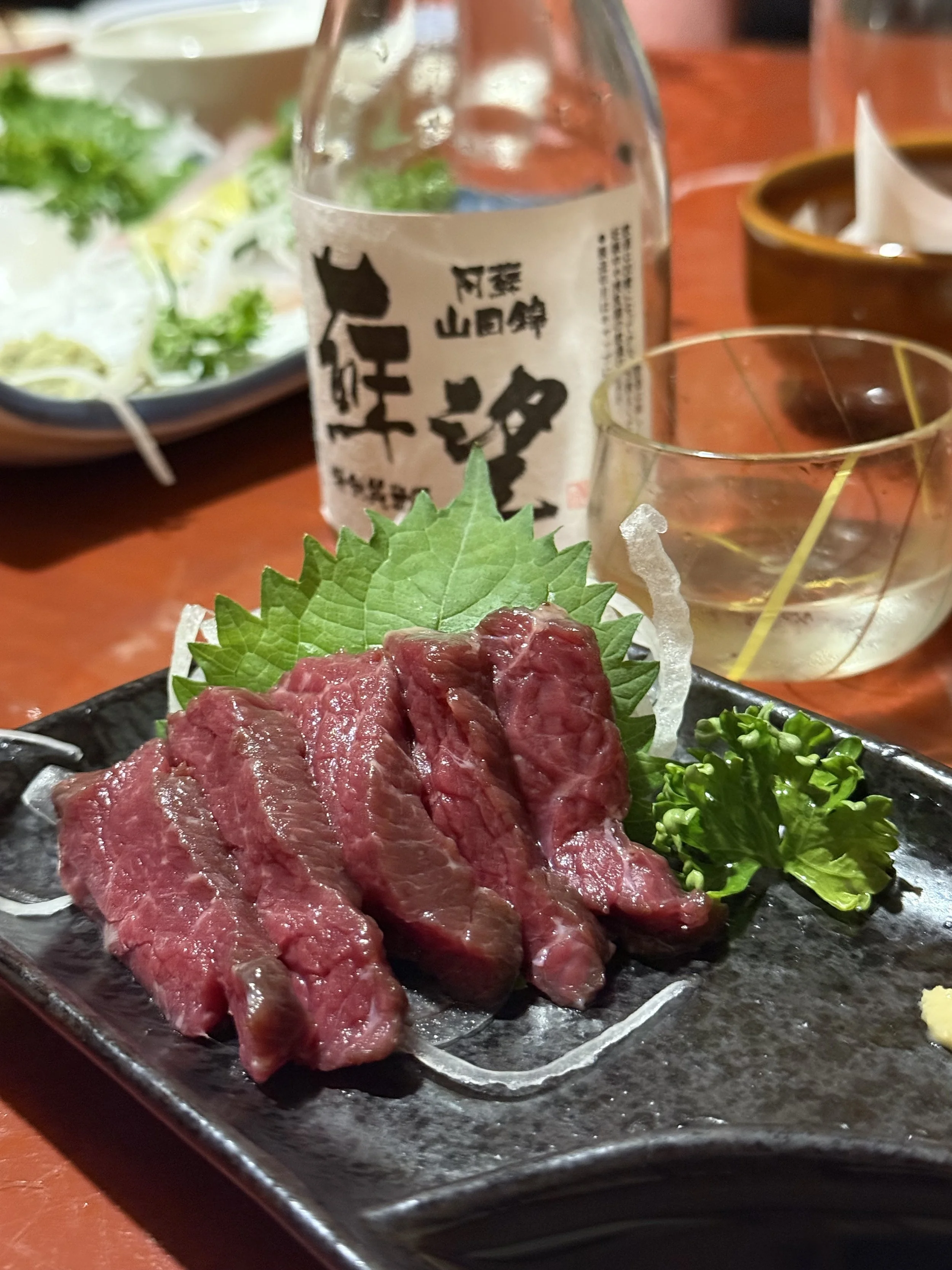 The final 2 days riding were incredible - cycling the Milk Road around the edge of the Aso Volcanic Caldera - with 360 degree views and a unique perspective of the caldera walls, with the rice paddies and villages below like patchwork and the 5 Peaks of Aso dominant in the middle. I think we all tried to ride as slowly as possible to soak up the atmosphere and views for as long as we could. The culinary adventure of the day basashi (horse meat sashimi) - possibly not for everyone!